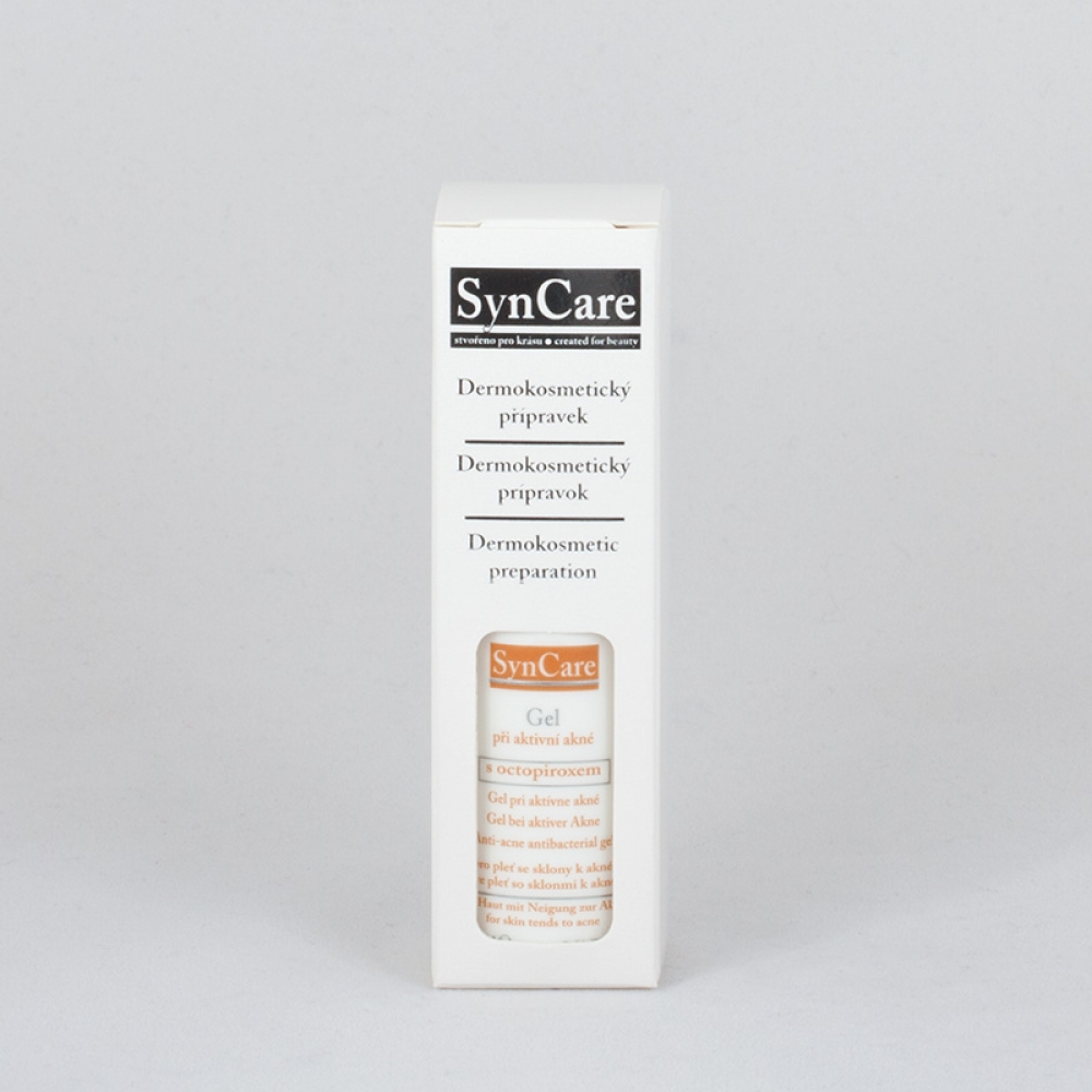 SynCare gél pri aktívnom akné s okropiroxom je veľmi účinný prípravok v boji proti zapáleným komedónom. Pomáha ich rýchlo zlikvidovať a tým zlepšuje stav aknóznej pleti. Pôsobí proti baktériám aknózneho zápalu, ústup baktérií je viditeľný po 1-2 dňoch.